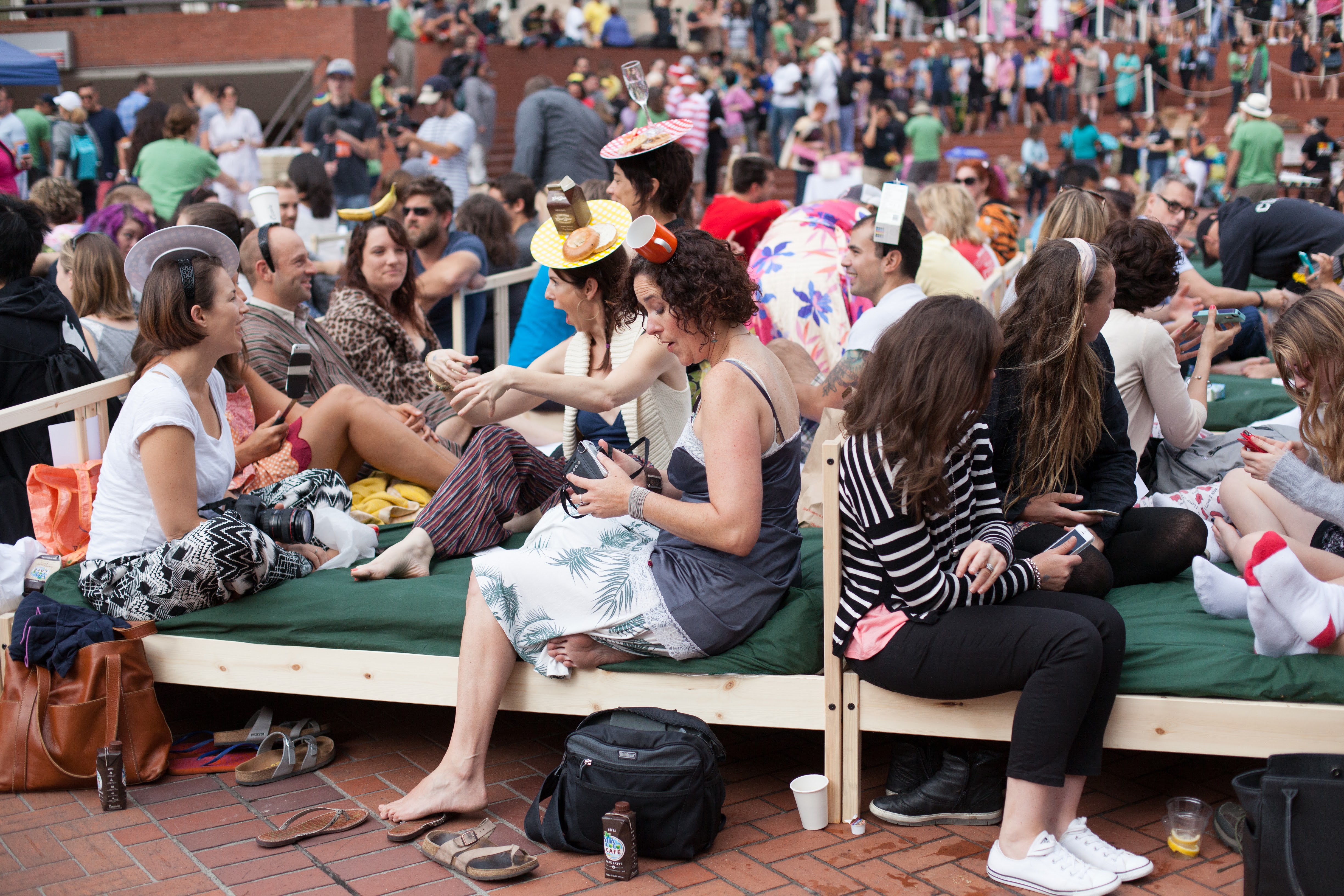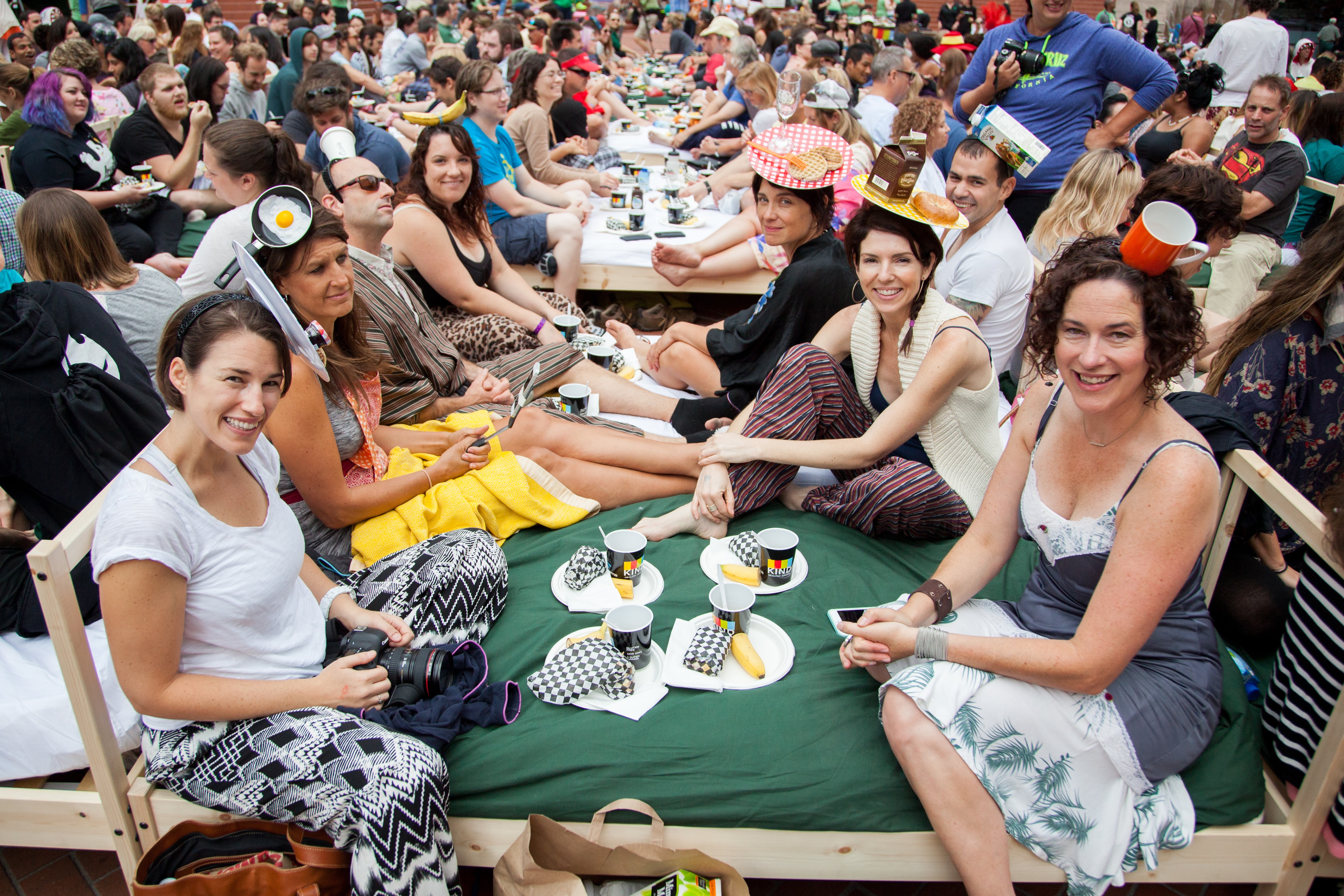 This year, after wearing ourselves out the previous years, we asked ourselves, “What’s the laziest record we could set?” It took some hard thought, but we landed on, “biggest breakfast in bed party.” What could be lazier than that?
