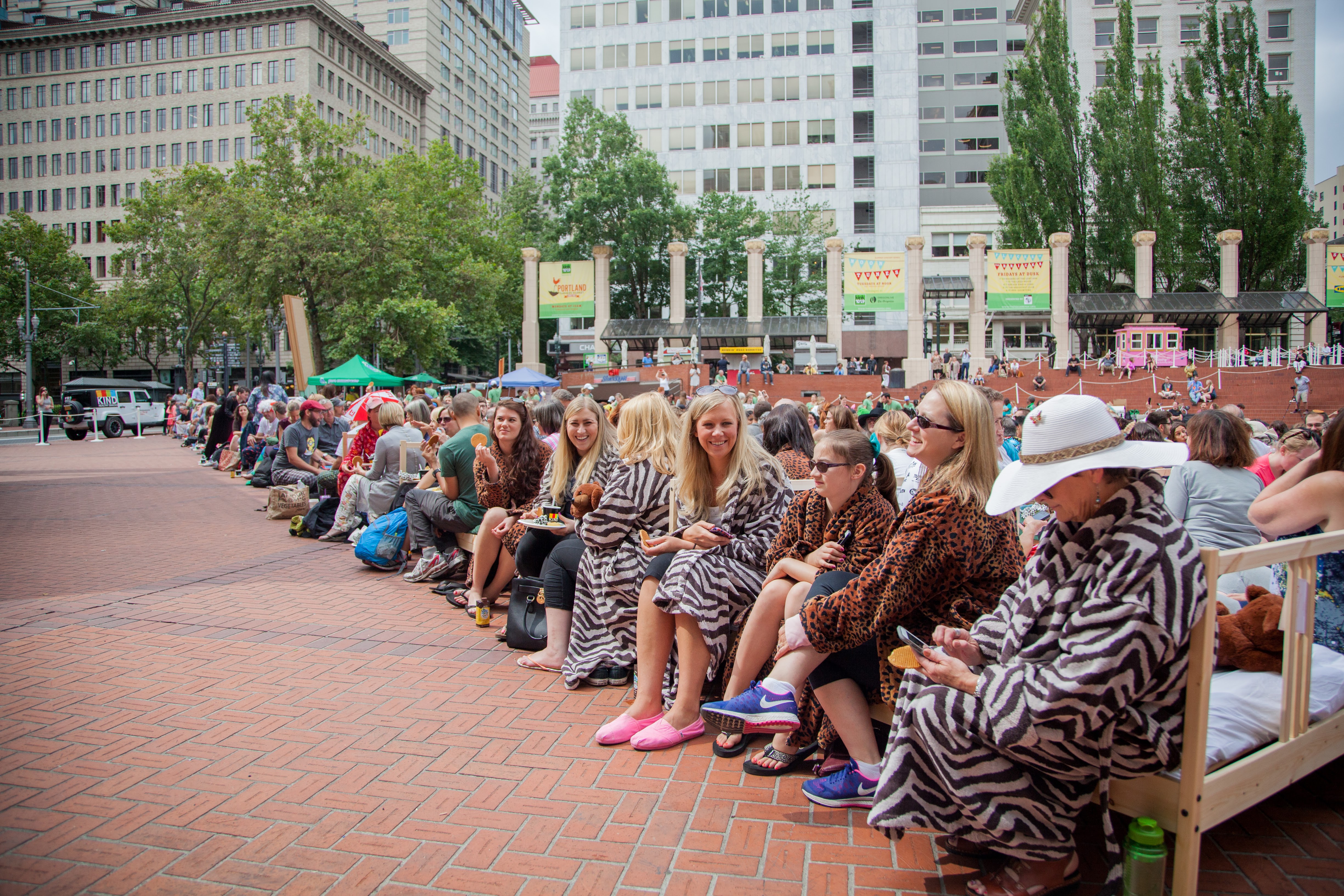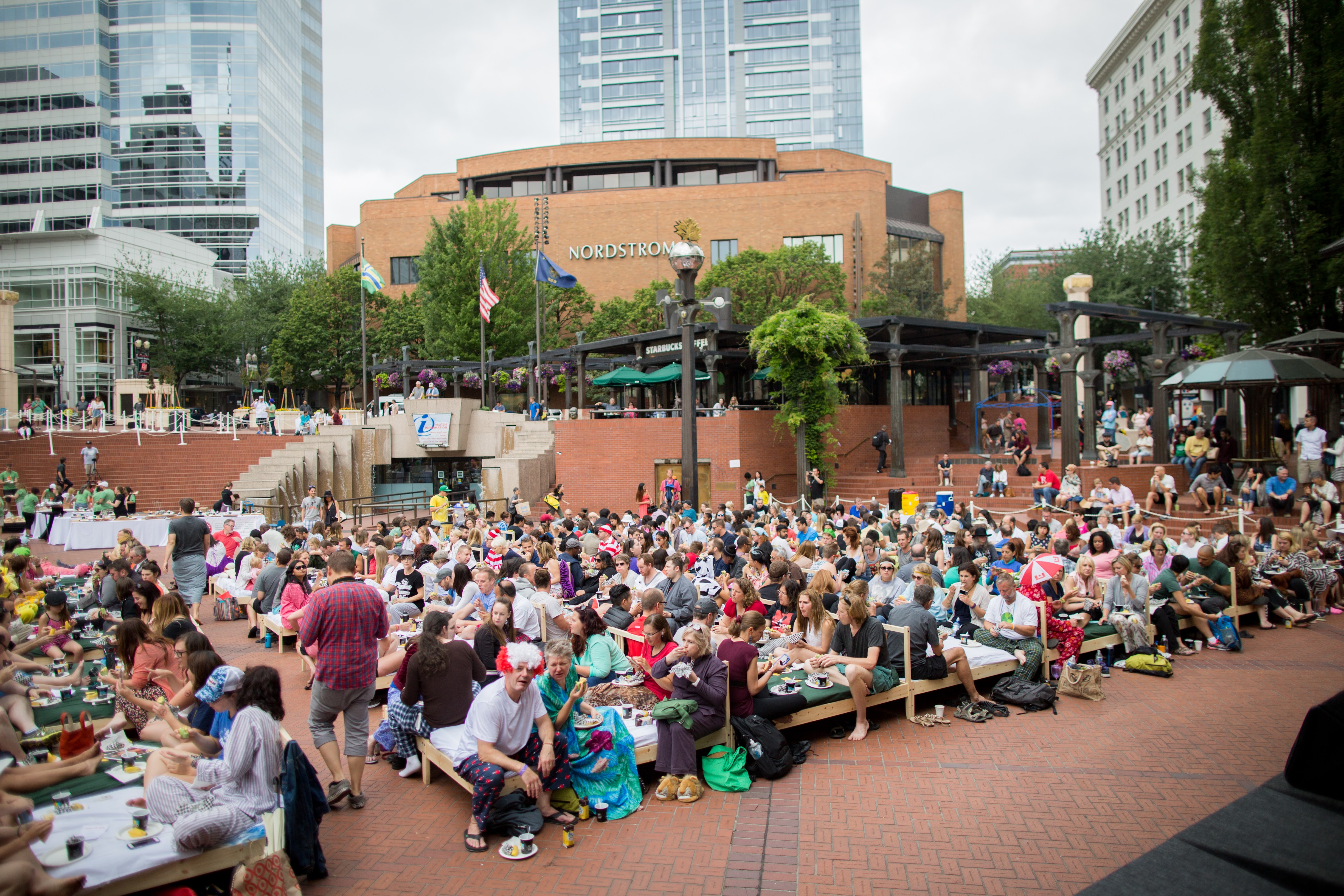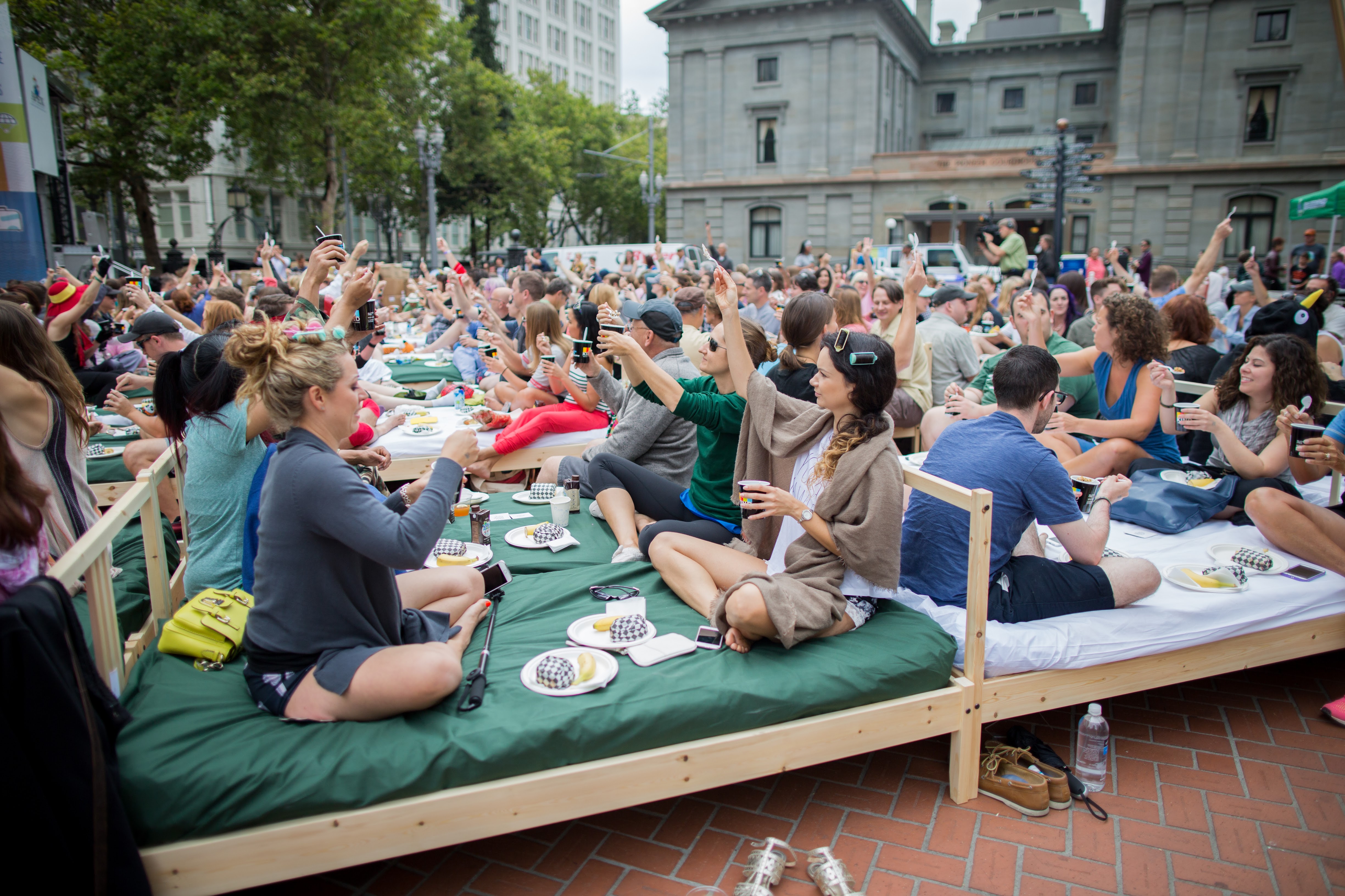 As expected, it turned out to be a lot more work than we originally planned, but the results were worth it. We broke the record (currently held in China) with 600 people in Pioneer Courthouse Square all eating breakfast together.