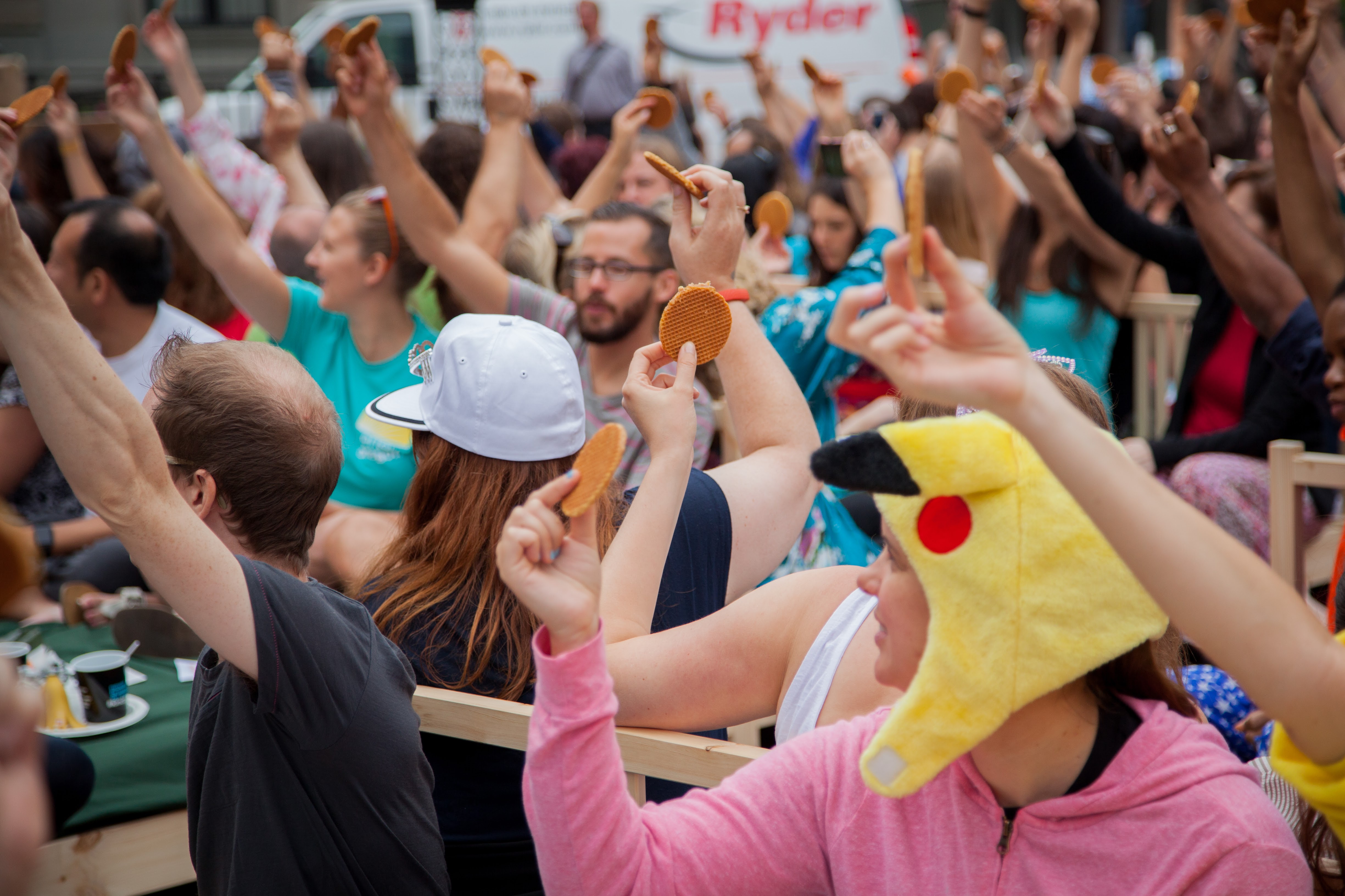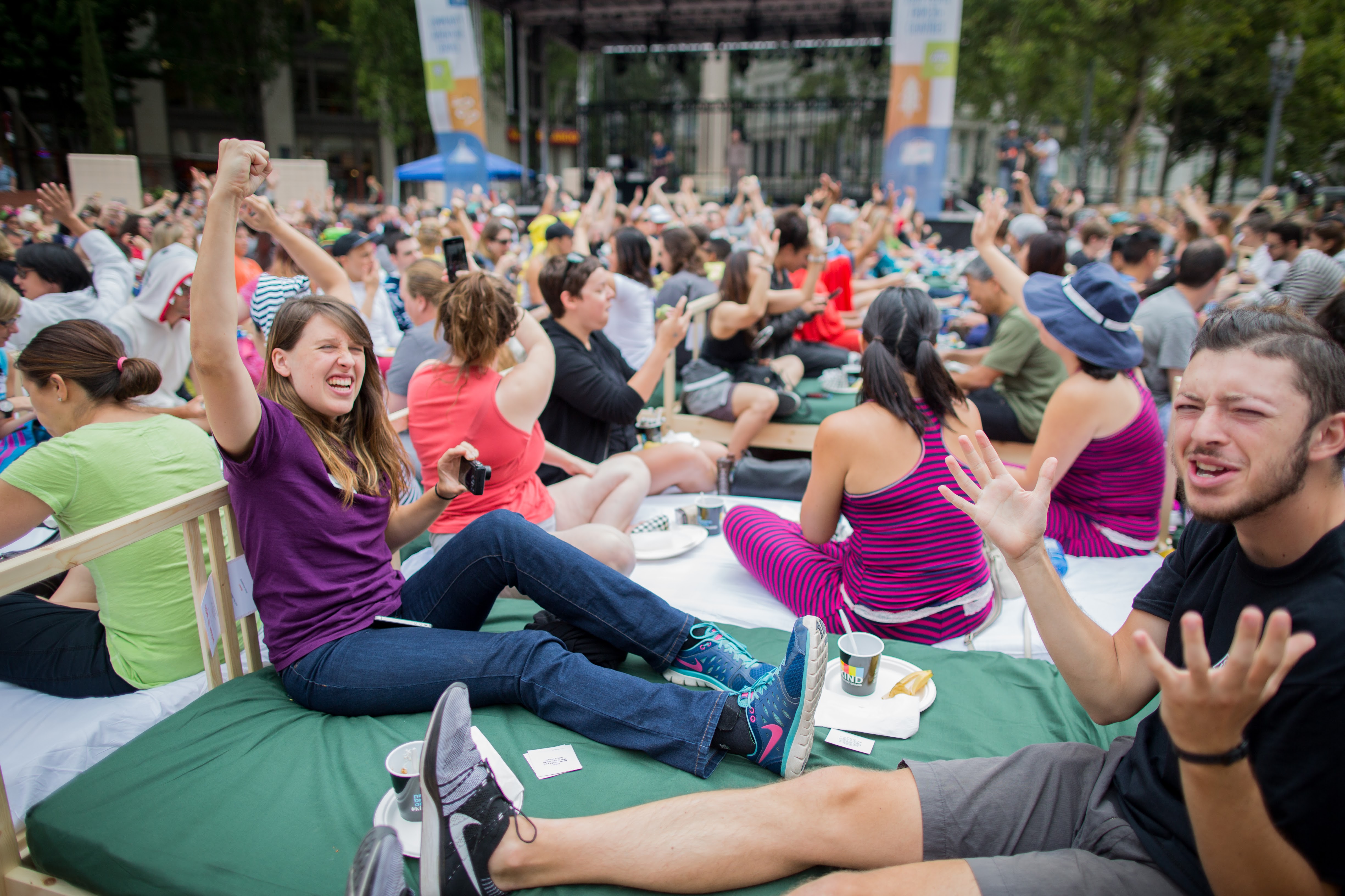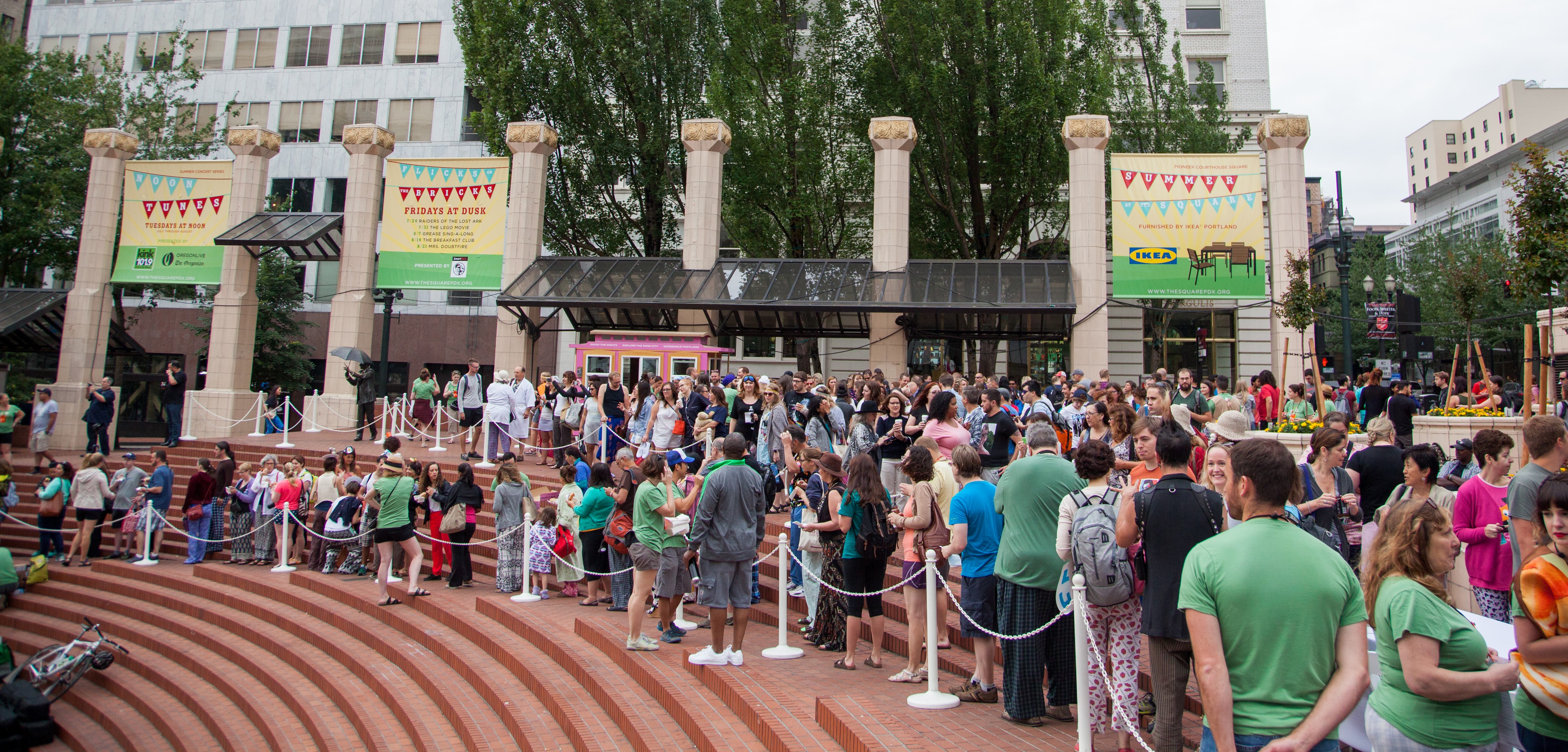 As expected, it turned out to be a lot more work than we originally planned, but the results were worth it. We broke the record (currently held in China) with 600 people in Pioneer Courthouse Square all eating breakfast together.