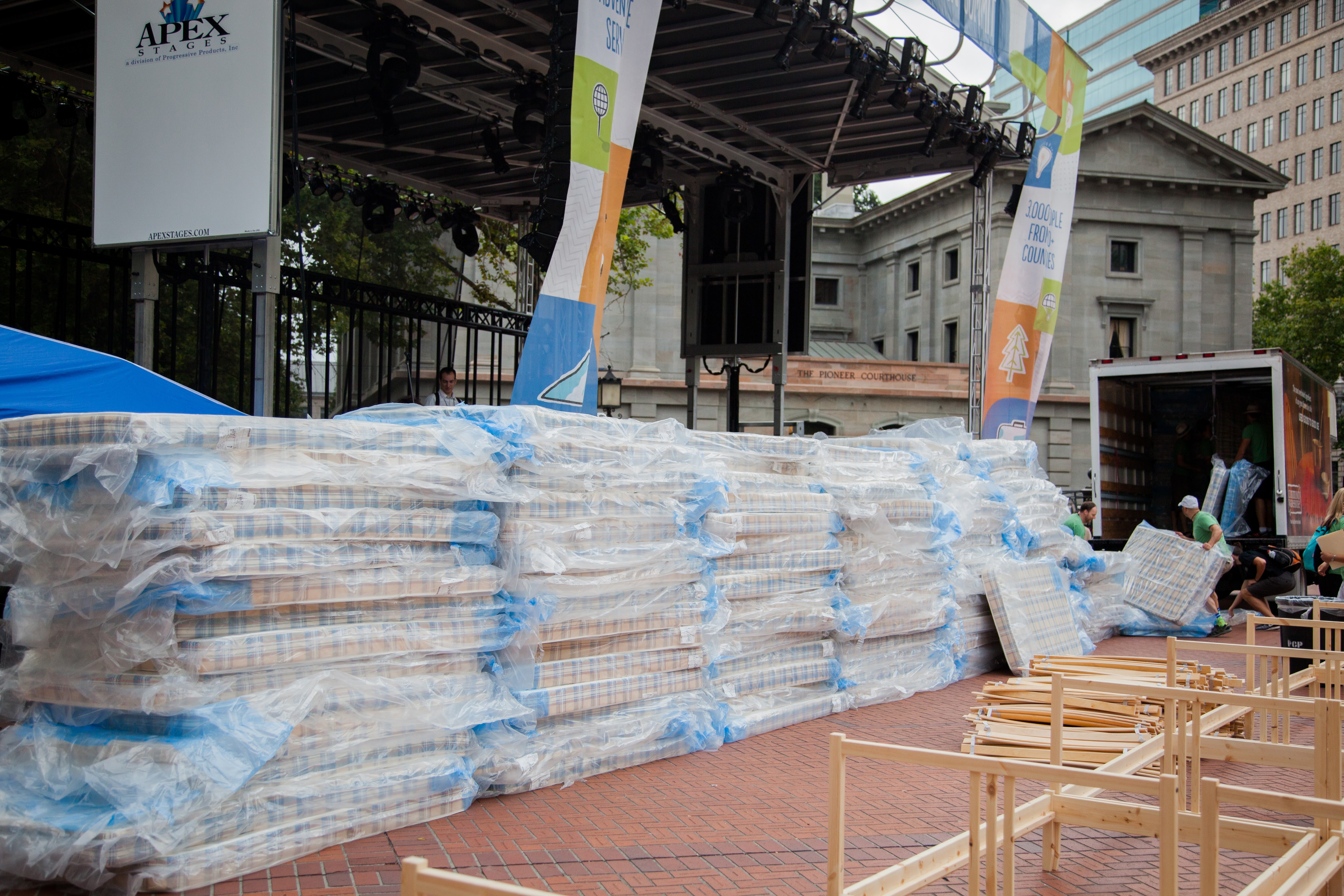 Every record is fun and special, but this one holds some extra significance because so many great people came together to make it a meaningful service project. We partnered with PDX Restore and Community Warehouse to donate all the beds to benefit families in need in Portland, and incredible vendors like Elephant’s Deli, KIND Snacks, Steve Smith Tea, and others donated their time and materials to create the breakfast we all enjoyed.